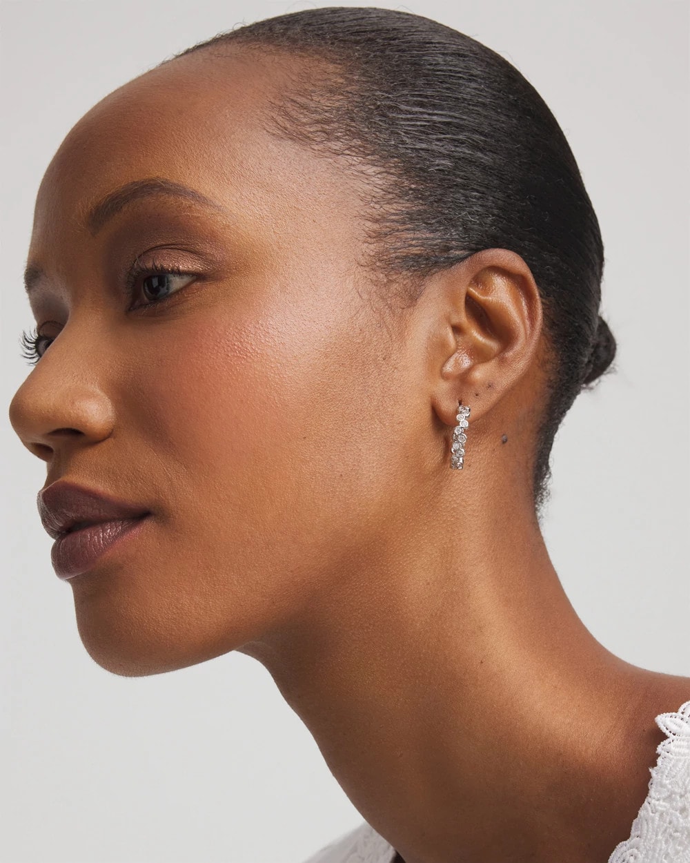 Sparkle for days—in these Silvertone Cubic Zirconia Hoop Earrings. Dainty and all-over cubic zirconia.Featuring Chico’s proprietary No Droop® technology to create statement styles without the weight on your earlobes. Pair with Chico’s goldtone Tennis bracelet and necklace to complete this look.