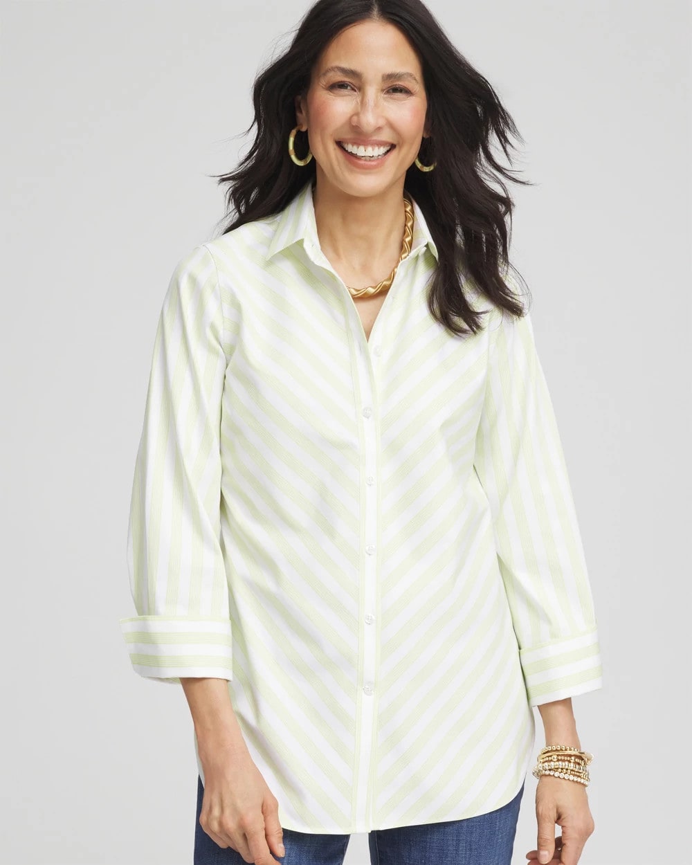 - Classic-fit; 3/4 sleeves, button-down.