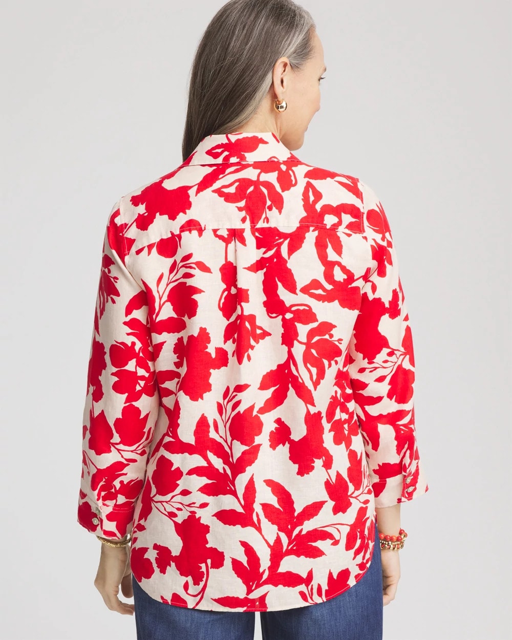 Our instantly bestselling No Iron™ shirt in a woven, breathable-linen silhouette showcasing a meticulously placed, bold red floral motif. We can’t keep our classic fit No Iron™ linen shirts in stock. This ready-to-wear right out of the dryer (without the hassle of ironing) top moves with you effortlessly for all-day comfort. It’s a straight silhouette with a point collar and shell-inspired buttons. Flawless every time in any season, whether on its own or as a base layer. Designed with a flattering shirttail hem and gusset. This button front pairs perfectly with jeans or pants.
