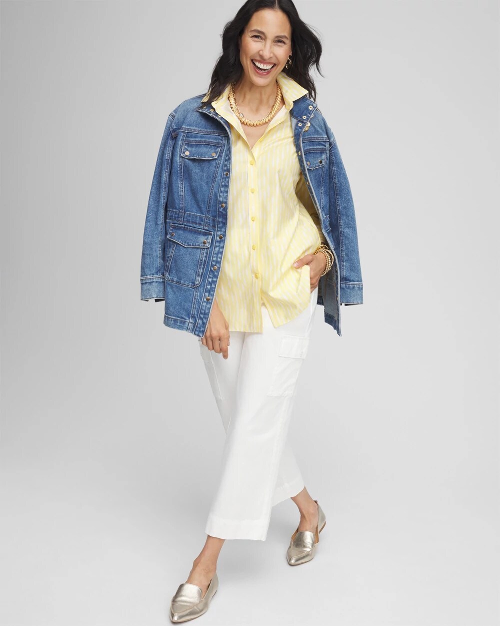 It’s no wonder we can’t keep our No Iron™ in stock. This ready-to-wear right-out-of-the-dryer (without the hassle of ironing) top moves with you effortlessly for all-day comfort. It’s a perfect fit every time in any season, whether on its own or as a base layer. Designed with a flattering shirttail hem and a lovely striped print, this button front pairs perfectly with jeans or pants.