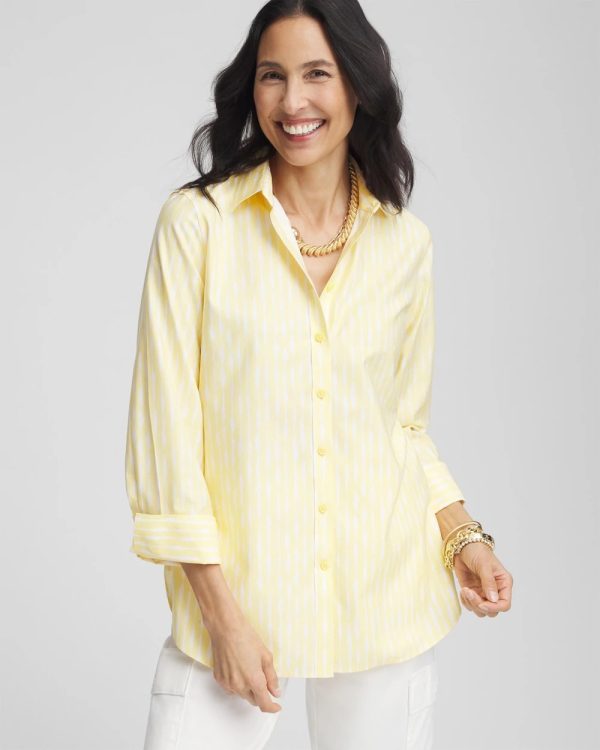 It’s no wonder we can’t keep our No Iron™ in stock. This ready-to-wear right-out-of-the-dryer (without the hassle of ironing) top moves with you effortlessly for all-day comfort. It’s a perfect fit every time in any season, whether on its own or as a base layer. Designed with a flattering shirttail hem and a lovely striped print, this button front pairs perfectly with jeans or pants.