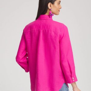 Our instantly bestselling No Iron™ shirt showcasing an ode to flawless linen. We can’t keep our classic-fit No Iron™ linen shirts in stock. This ready to wear right out of the dryer (without the hassle of ironing) top moves with you effortlessly for all-day comfort. This top is cut for a straight silhouette with a point collar. Perfect every time in any season, whether on its own or as a base layer. Designed with a flattering shirttail hem and gusset. This button front pairs perfectly with jeans or pants.