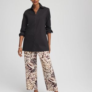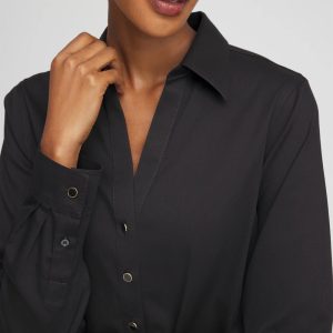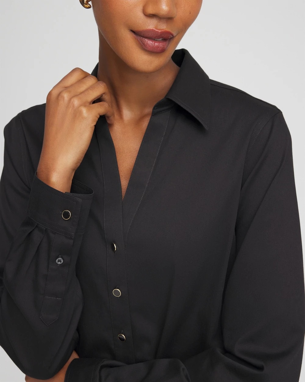 Our instantly bestselling No Iron™ shirt in a splitneck, short tunic silhouette. Featuring sleek, monochromatic buttons with golden rims. This ready to wear, right out of the dryer (without the hassle of ironing) stretch tunic moves with you effortlessly for all-day comfort. Cut for a straight silhouette with a point collar, shirttail hem, and gusset.
