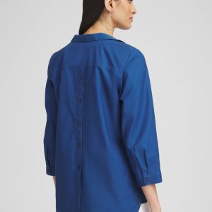 - Classic-fit; 3/4 sleeves, concealed half placket, collared with back buttons.