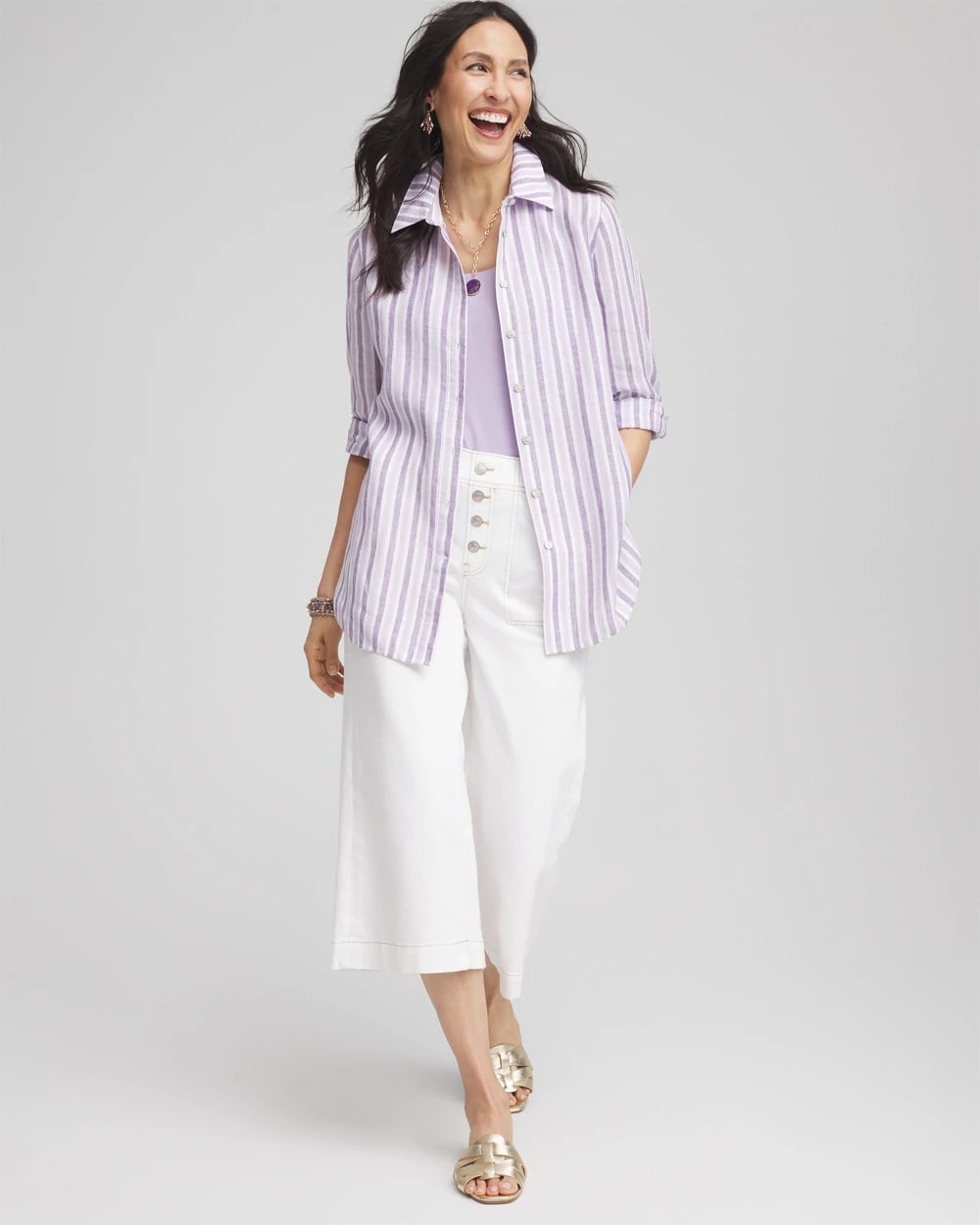 No Iron™ Plum Striped Linen Shirt