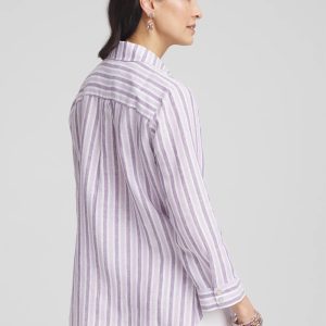 It’s no wonder we can’t keep our No Iron™ linen shirts in stock. This ready-to-wear right-out-of-the-dryer (without the hassle of ironing) top moves with you effortlessly for all-day comfort. It’s a perfect fit every time in any season, whether on its own or as a base layer. Designed with a flattering shirttail hem and a tonal plum striped print, this button down pairs perfectly with jeans or pants.