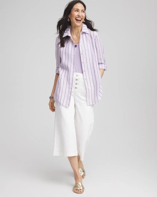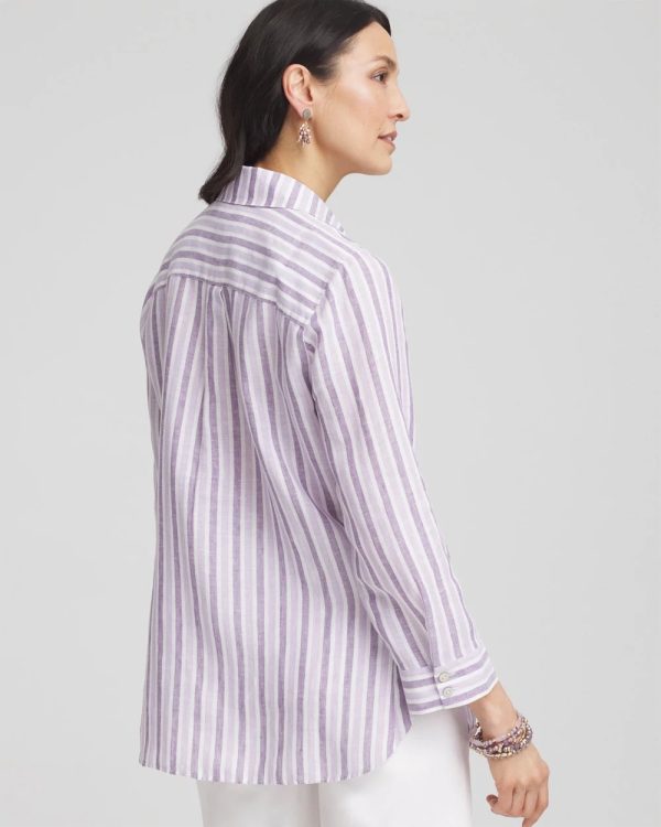 It’s no wonder we can’t keep our No Iron™ linen shirts in stock. This ready-to-wear right-out-of-the-dryer (without the hassle of ironing) top moves with you effortlessly for all-day comfort. It’s a perfect fit every time in any season, whether on its own or as a base layer. Designed with a flattering shirttail hem and a tonal plum striped print, this button down pairs perfectly with jeans or pants.