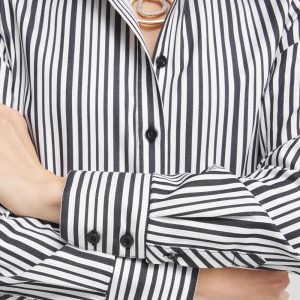 New Shimmer Stripes Shirt in our coveted No Iron™ fabric, made to defy wrinkles and stay fresh from the dryer to the end of your festive holiday party. There’s a reason why our No Iron™ top is a five-star rated, bestselling customer favorite. It moves with you for all-day comfort and stays looking brand new without the effort of ironing or dry cleaning. It’s the perfect shirt in any season, whether on its own or as a base layer. Designed with a sharp-looking shirttail hem and stripes with lurex design, this button front pairs with jeans or pants. Available now in new animal prints, paisley, graphic prints, and more!