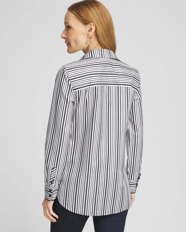 New Shimmer Stripes Shirt in our coveted No Iron™ fabric, made to defy wrinkles and stay fresh from the dryer to the end of your festive holiday party. There’s a reason why our No Iron™ top is a five-star rated, bestselling customer favorite. It moves with you for all-day comfort and stays looking brand new without the effort of ironing or dry cleaning. It’s the perfect shirt in any season, whether on its own or as a base layer. Designed with a sharp-looking shirttail hem and stripes with lurex design, this button front pairs with jeans or pants. Available now in new animal prints, paisley, graphic prints, and more!
