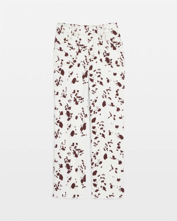 Add a dash of vintage ’90s style to your wardrobe with these retro ‘cowgirl chic’ pull-on jeans, showcasing a masterfully crafted animal cow-print, mimicking cowhide with a special technique. Designed with an elongating, easy wear wide-leg, fashionable fray hemline, and the same tummy smoothingHollywood waist you know and love. Accented with sleek seam details, faux-button pull-on silhouette, and Western-inspired spirit. For the full-fashion effect, pair with the matching neckerchief and jacket.
