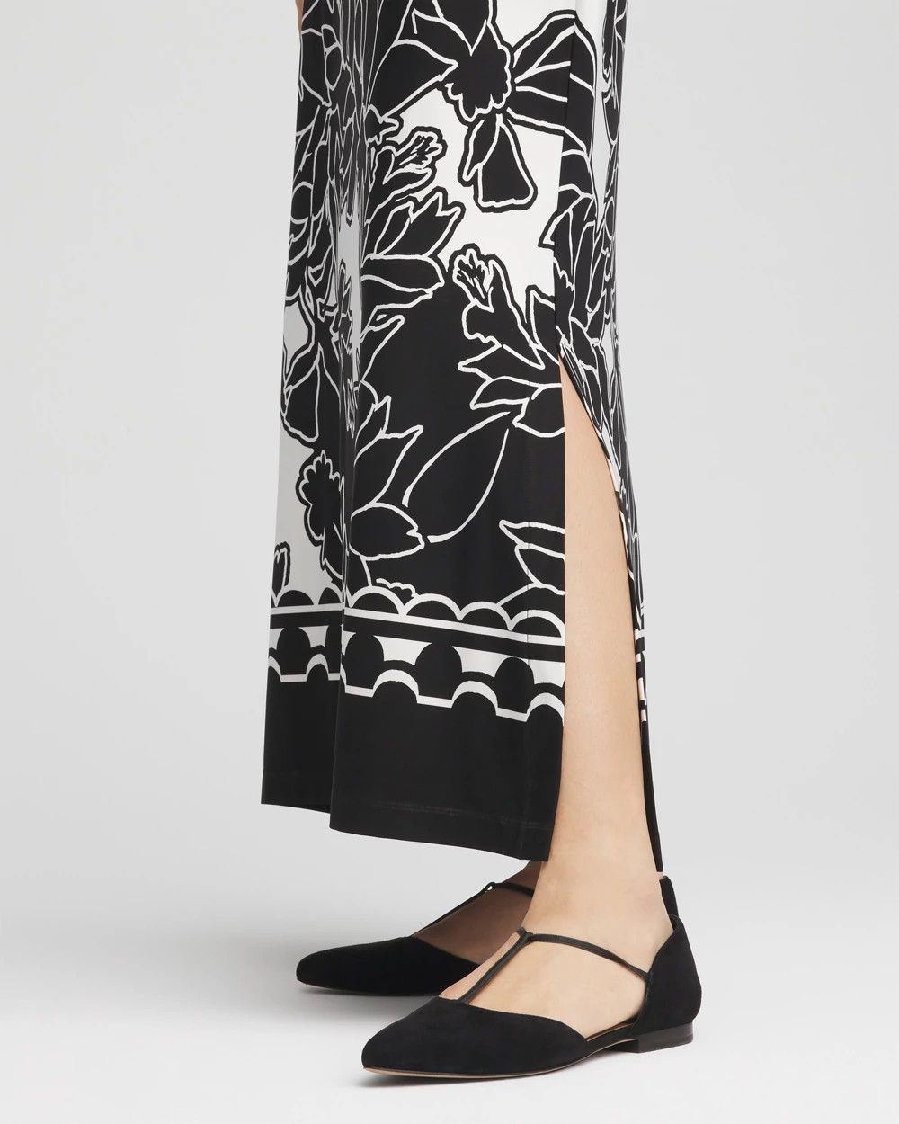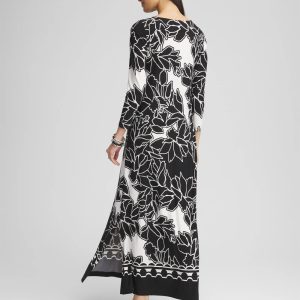 Add this new stunning style to your dress wardrobe, Chico’s Bateau-Neck Jersey Maxi Dress features a printed border hemline, flattering maxi silhouette, side-slit, and long sleeves.