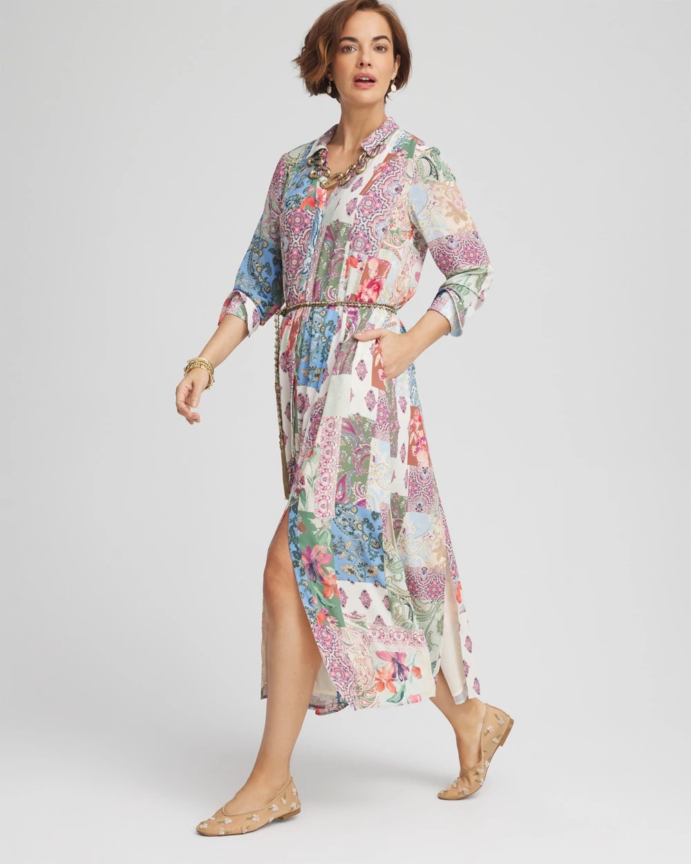 Add this trend-setting style to your 2025 dress collection — Chico’s new Belted Paisley Patch Maxi Shirtdress. Showcasing an expertly made patchwork-paisley print, split neckline, and stylish front and back seaming.