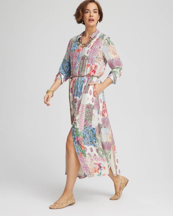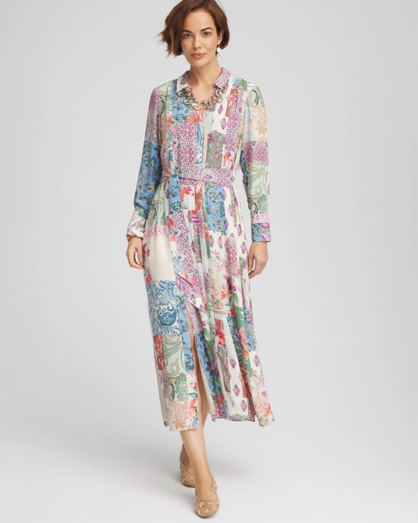 Add this trend-setting style to your 2025 dress collection — Chico’s new Belted Paisley Patch Maxi Shirtdress. Showcasing an expertly made patchwork-paisley print, split neckline, and stylish front and back seaming.