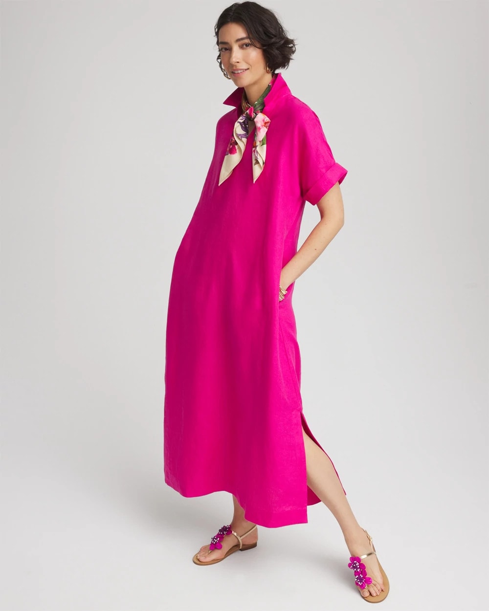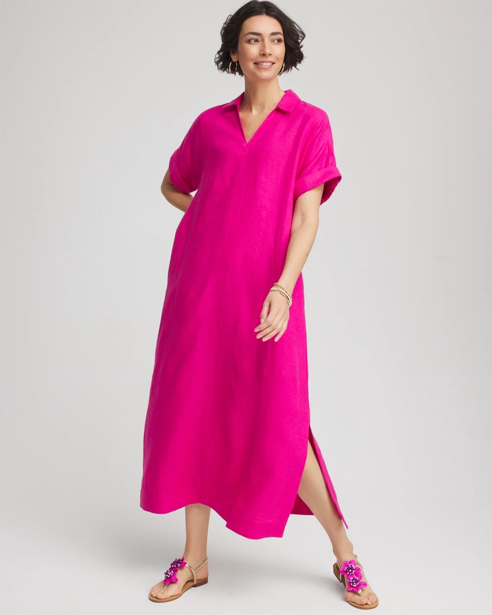 Petite Linen Popover Kaftan Dress