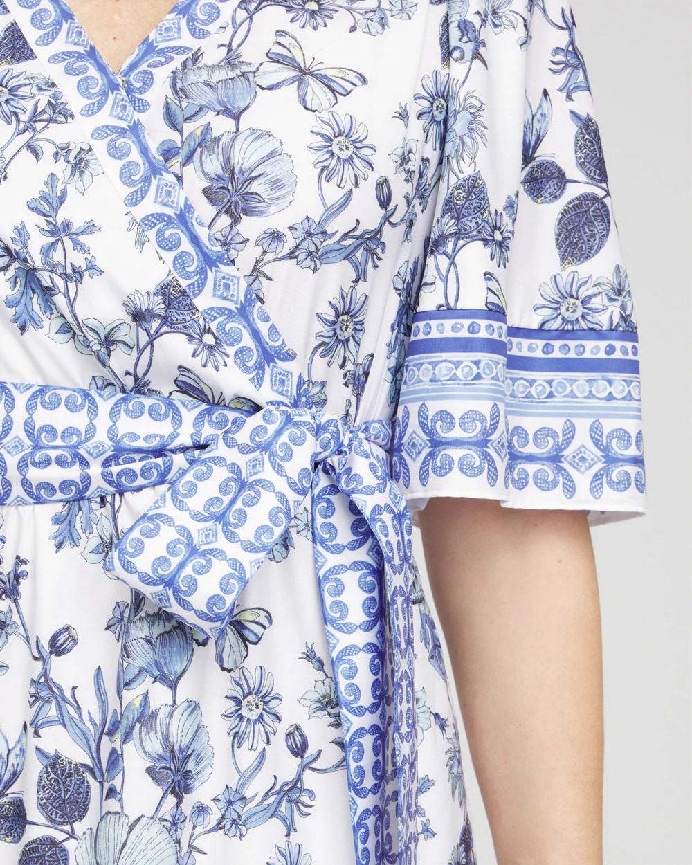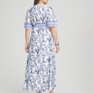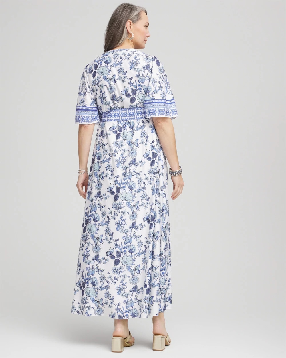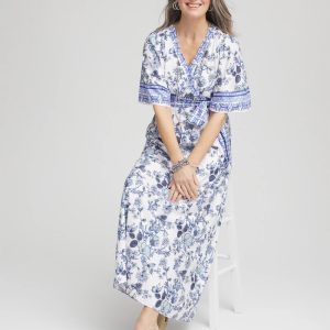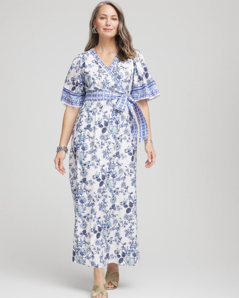This beautiful new butterfly print, matte satin maxi dress is perfect for everyday wear or for dressing up for dinner plans. Featuring an ultra-stylish self-belt (removable), and flattering elastic waistband, it’s both comfortable and stylish. The neckline, fabulous removable belt, and cuffs showcase a contrast print. Pair with Chico’s matching jewelry and accessories featuring the most-loved butterfly motif.