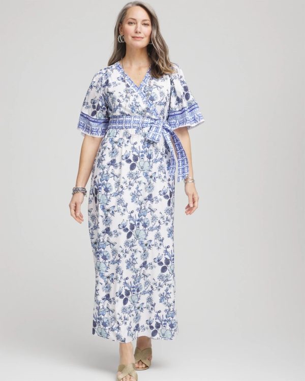 This beautiful new butterfly print, matte satin maxi dress is perfect for everyday wear or for dressing up for dinner plans. Featuring an ultra-stylish self-belt (removable), and flattering elastic waistband, it’s both comfortable and stylish. The neckline, fabulous removable belt, and cuffs showcase a contrast print. Pair with Chico’s matching jewelry and accessories featuring the most-loved butterfly motif.