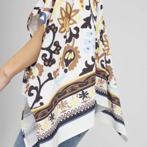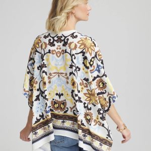 Don’t miss out on this, perfect for vacation, everyday or festival season, Printed Button-Front Poncho. Thesilhouettemakes this poncho an outfit maker—wear as an oversized top with a microfiber tank underneath or as a pullover topper. Dress it down with jeggings on casual days or dress is up with pants for more upscale affairs.
