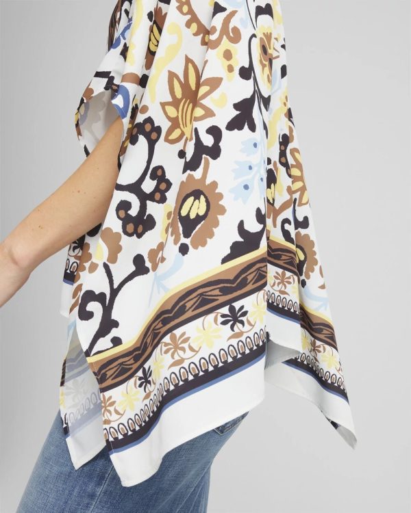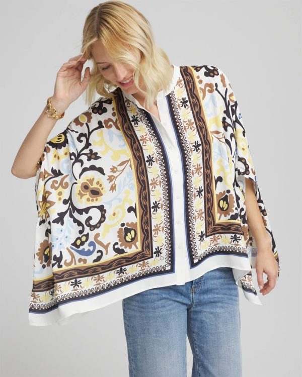 Don’t miss out on this, perfect for vacation, everyday or festival season, Printed Button-Front Poncho. Thesilhouettemakes this poncho an outfit maker—wear as an oversized top with a microfiber tank underneath or as a pullover topper. Dress it down with jeggings on casual days or dress is up with pants for more upscale affairs.