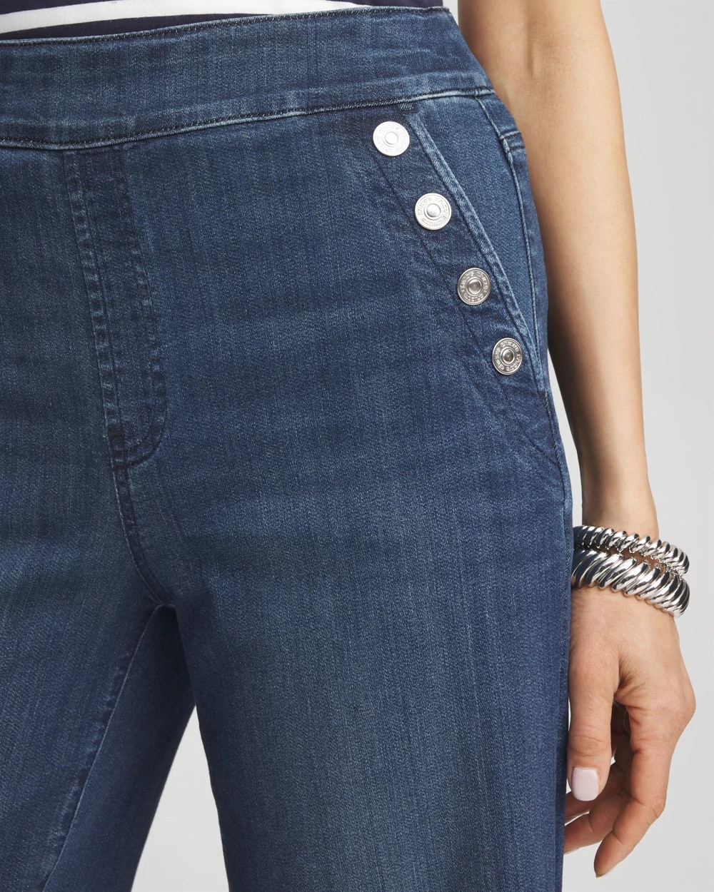 The Pull-On Wide Leg Ankle Jeans are one of our most exciting new styles. Made with a pull-on comfort waist accented with snap buttons, these jeans feature our debut wide leg fit that’s roomier and so in fashion. Wear this new favorite with tees and fashion tops for the latest in casual attire.