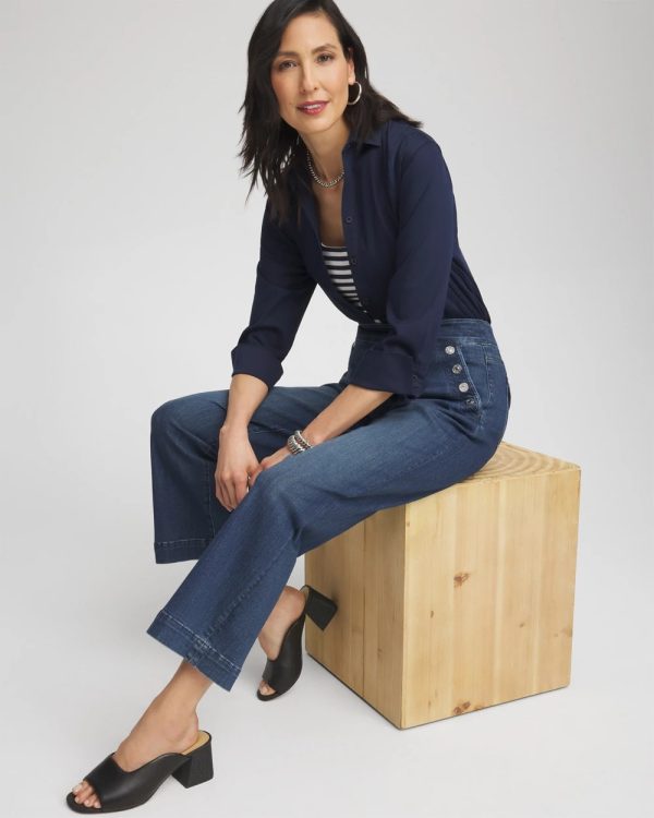 The Pull-On Wide Leg Ankle Jeans are one of our most exciting new styles. Made with a pull-on comfort waist accented with snap buttons, these jeans feature our debut wide leg fit that’s roomier and so in fashion. Wear this new favorite with tees and fashion tops for the latest in casual attire.