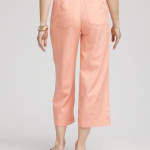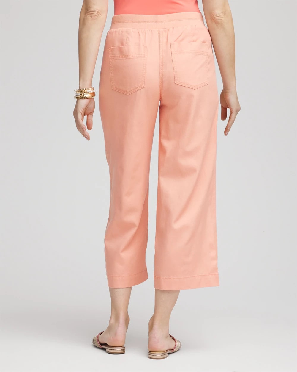 Ribbed Waist Linen Blend Straight-Leg Cropped Pants