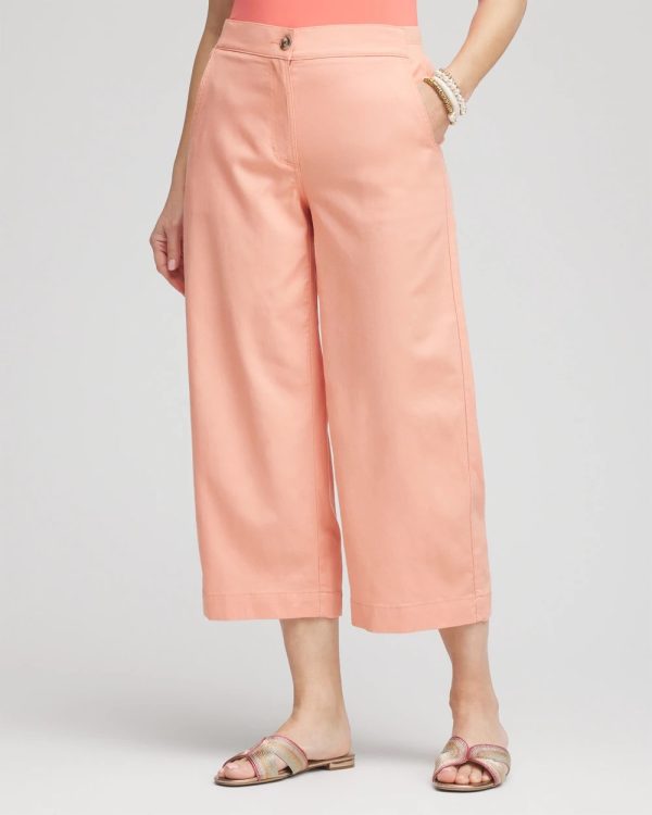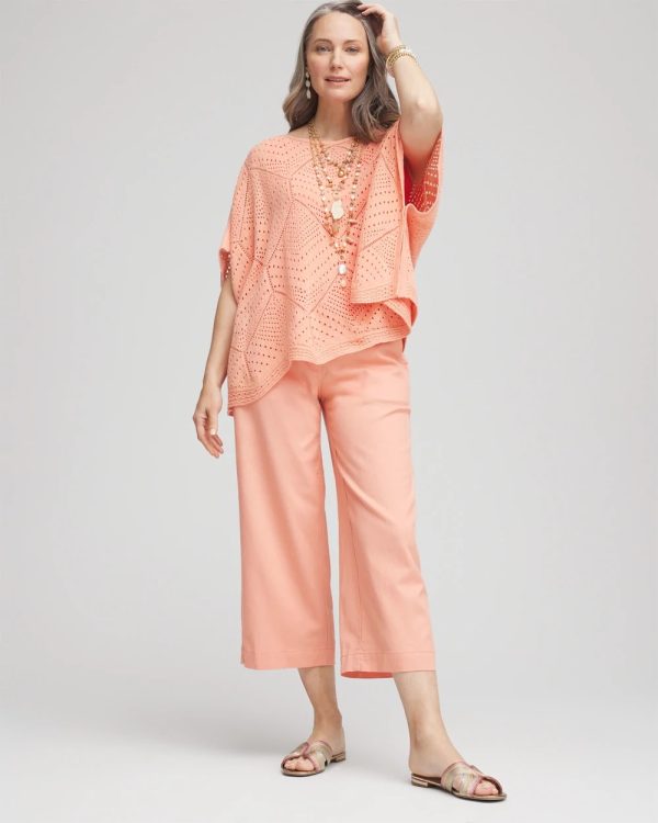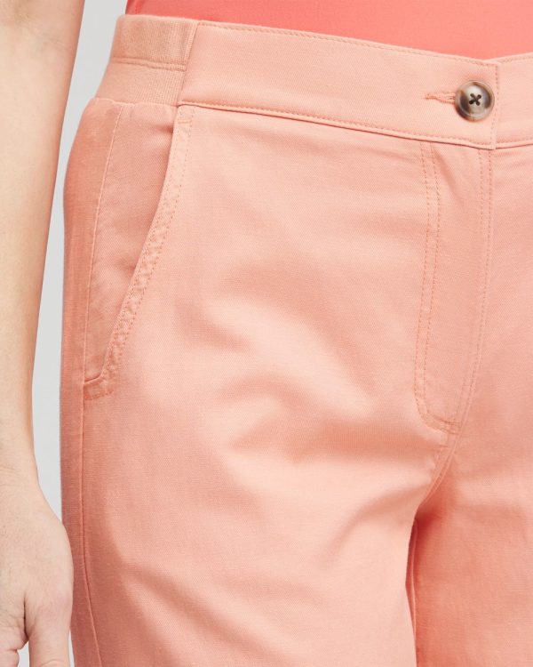 Ribbed Waist Linen Blend Straight-Leg Cropped Pants