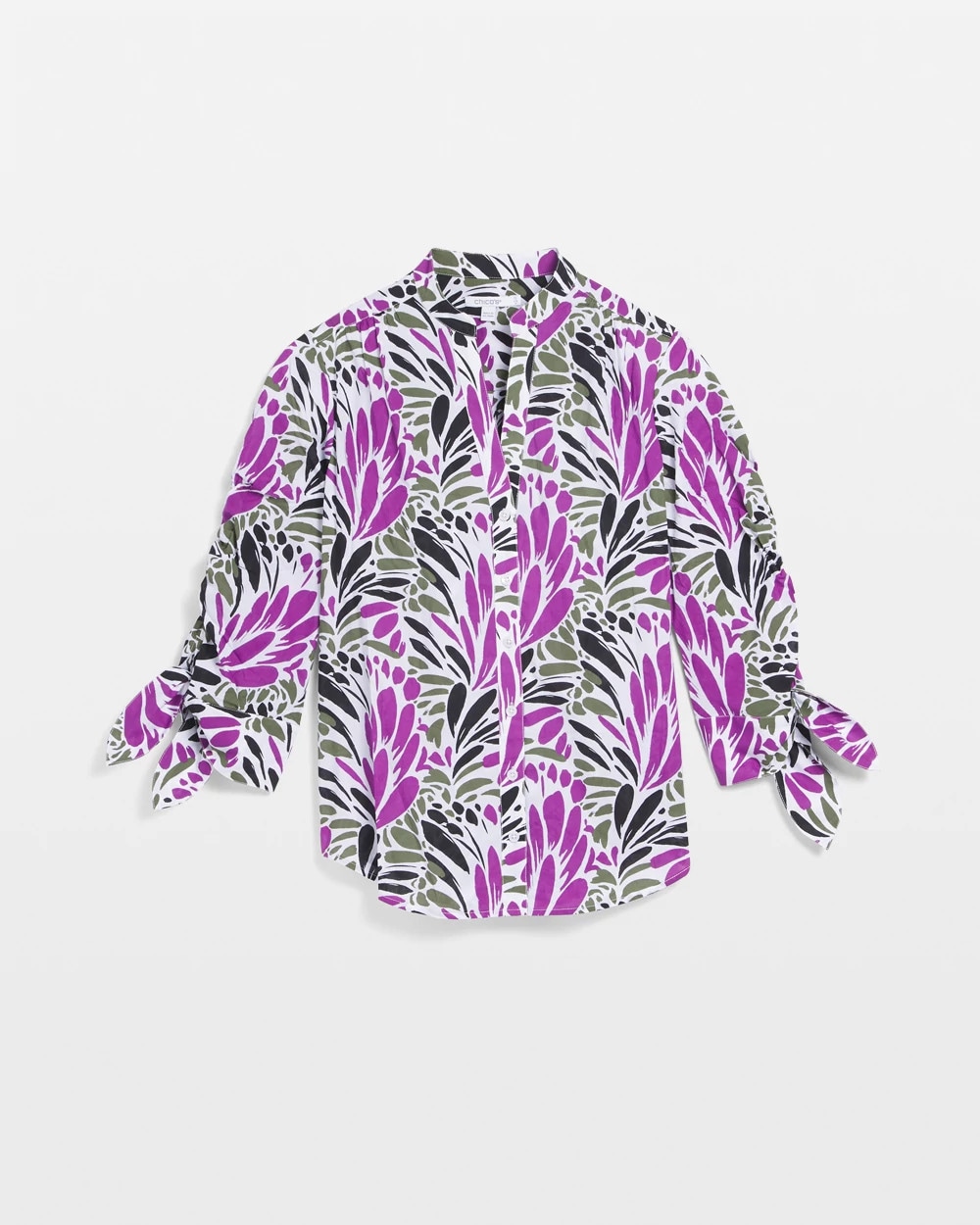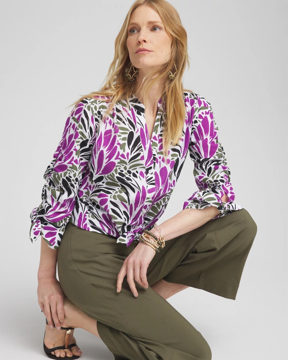 You’ll find that our Ruched Sleeve Floral Blouse has just the right look and feel for the season. Made with summer cotton that’s lightweight and breathable, this button front top features ruching details and functional tie accents at the 3/4 sleeves, plus a lovely floral print. Wear it with crops or capris for an look that’s the right fit for warmer days and nights.
