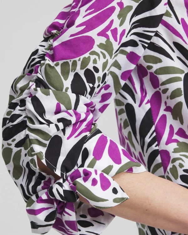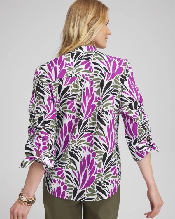 You’ll find that our Ruched Sleeve Floral Blouse has just the right look and feel for the season. Made with summer cotton that’s lightweight and breathable, this button front top features ruching details and functional tie accents at the 3/4 sleeves, plus a lovely floral print. Wear it with crops or capris for an look that’s the right fit for warmer days and nights.
