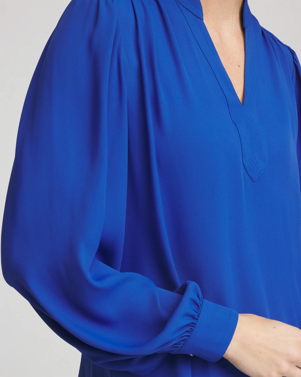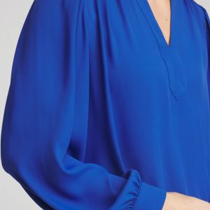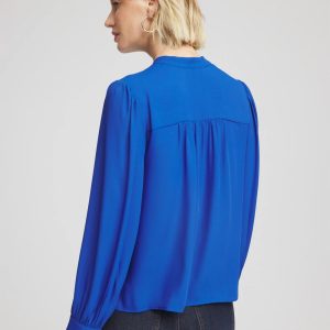 Shirring on the cuff, shoulder, front and back yoke helps define this Splitneck Pullover Crepe Blouse. Cut for a relaxed-fit from lightweight crepe. Pair this ultra-stylish top with jeans or cropped pants to strike a casual balance, Emme, Brigitte, or Juliet pants for a more upscale style.