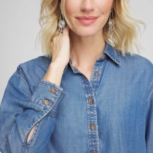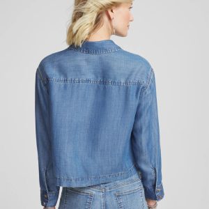 Classic shirting details—including taupe buttons and point collar—unite with a soft, breathable Tencel™ fabrication and a cropped hemline for a modern spin on a classic-fit shirt that can be worn in a variety of ways.