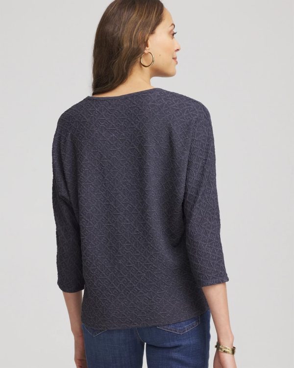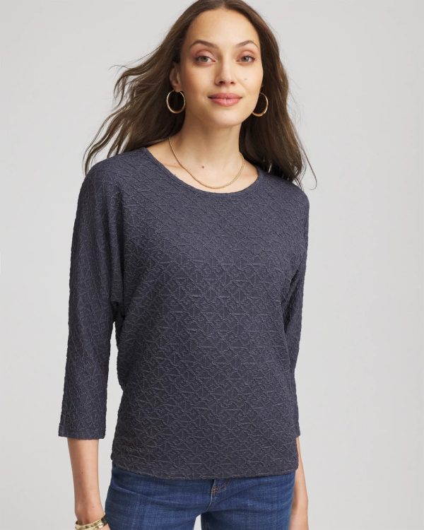 The Textured Tapered-Hem Top is cut from Chico’s luxurious jacquard fabric, crafted to look and feel elevated. This relaxed, dolman sleeved top with a slightly tapered waist can be paired with almost any pants—high or mid-rise to create a smooth silhouette. For a monochromatic style wear with the season’s matching slim pants.