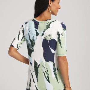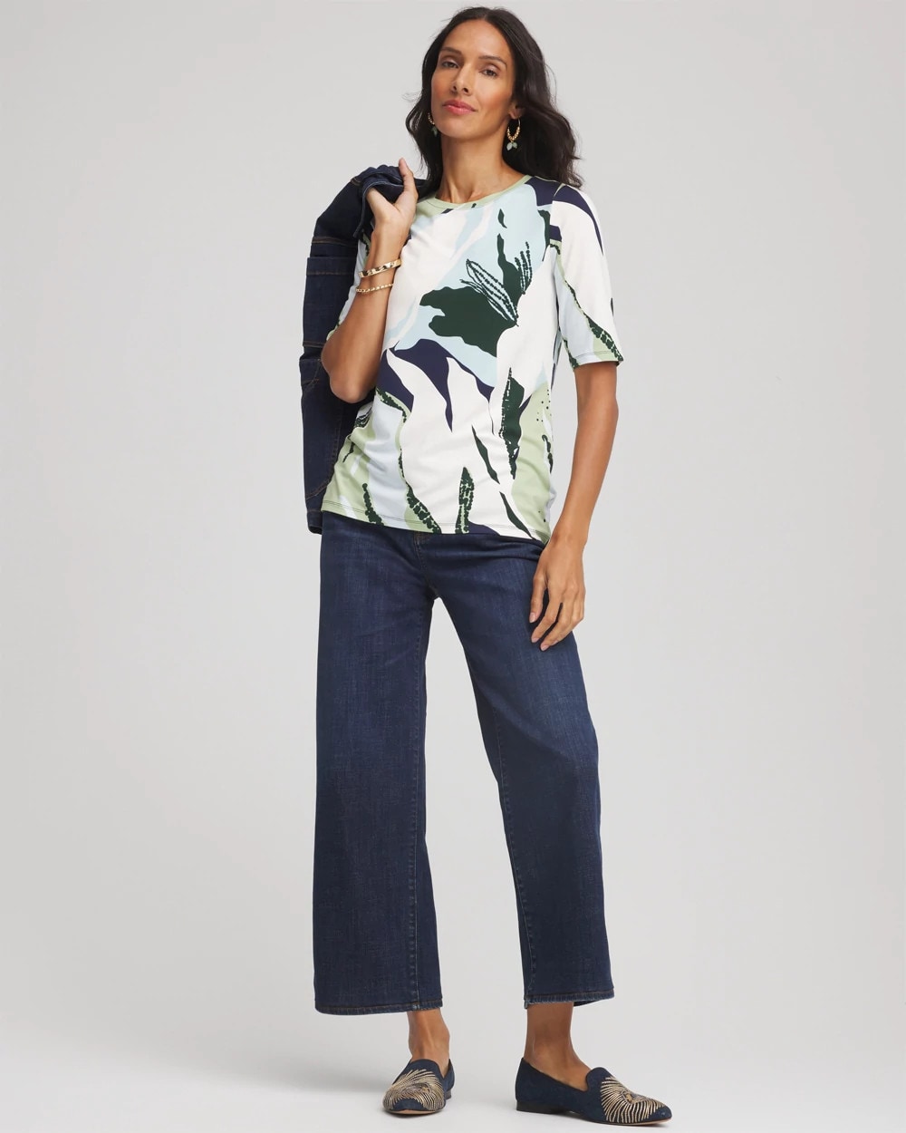 The perfect short-sleeve t-shirt—Chico’s Touch of Cool™ Elbow-Sleeve Perfect Tee with a super flattering silhouette and cooling feel. This tee elevates your casual styles with ease. Cut from Chico’s proprietary Touch of Cool™ high-tech fabrication, a super-soft cool to the touch cozy construction. The perfect tee for everyday wear or layering as part of a variety of styles.