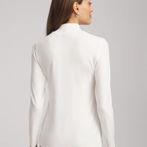 - Classic-fit long-sleeved mockneck tee.