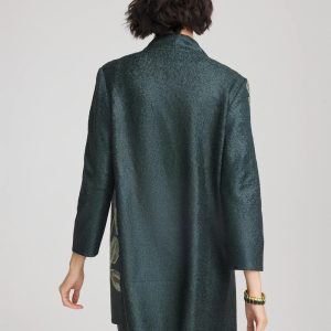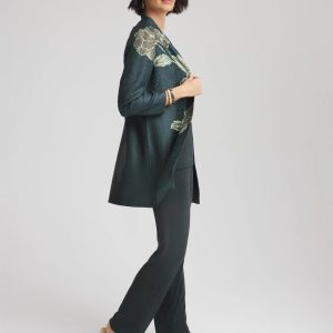 Crushed jacket, inspired by our love of fashion as art—sultry, breezy, and sophisticated. Two ways to wear, solid or print. Bracelet sleeves, open-front reversible jacket with flawless construction. The perfect, lightweight jacket—from daytime stroll to dinner plans—pack this topper without the worry of wrinkling. Custom-colored to match the artisanal tunic and midi skirt.
