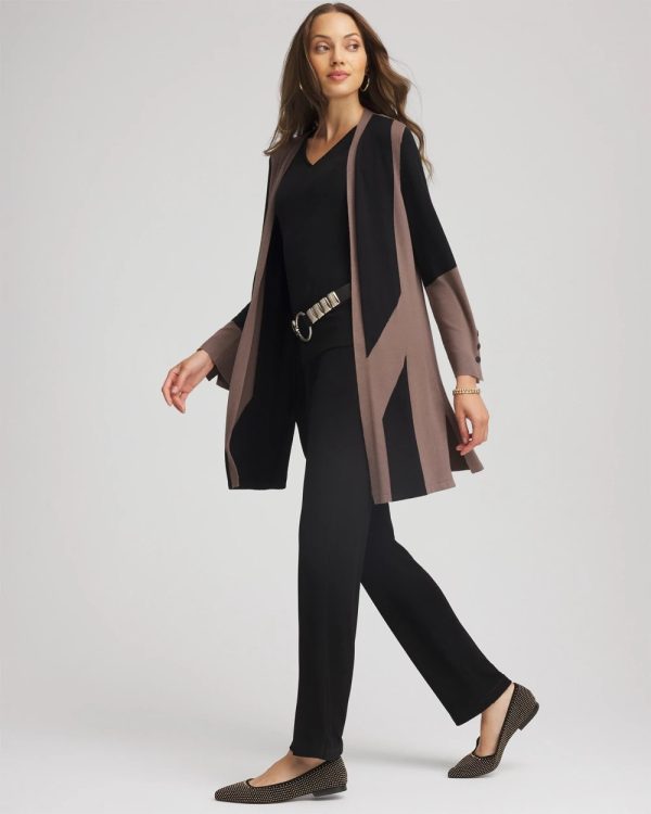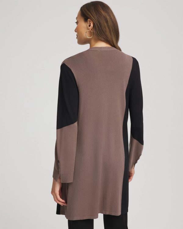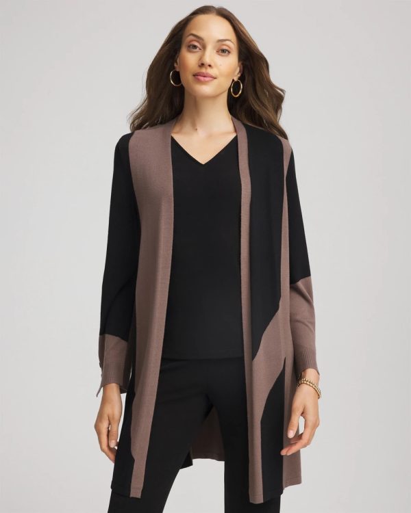 Cut from soft, comfortable fabric that holds its shape, designed with a sophisticated colorblock pattern. This Travelers™ Collection Colorblock Cardigan brings lightweight warmth with a beautiful drape. Perfectly packable, wrinkle-resistant, and versatile. Accented by thoughtful design elements including side-slits and decorative buttons on the cuff.