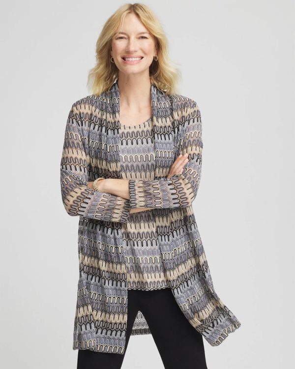 Cut from Travelers™ newest travel-friendly fabrication: soft to the touch, stretch-knit, this cardigan adds lightweight warmth with a beautiful drape. Perfectly packable, wrinkle-resistant, and versatile. Accented by thoughtful design elements including a comforting shawl collar united by the season’s chevron motif to bring dimension and a modern appeal.