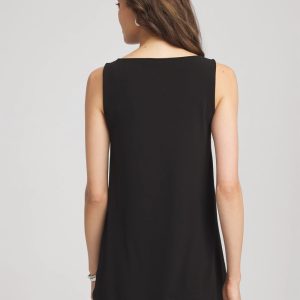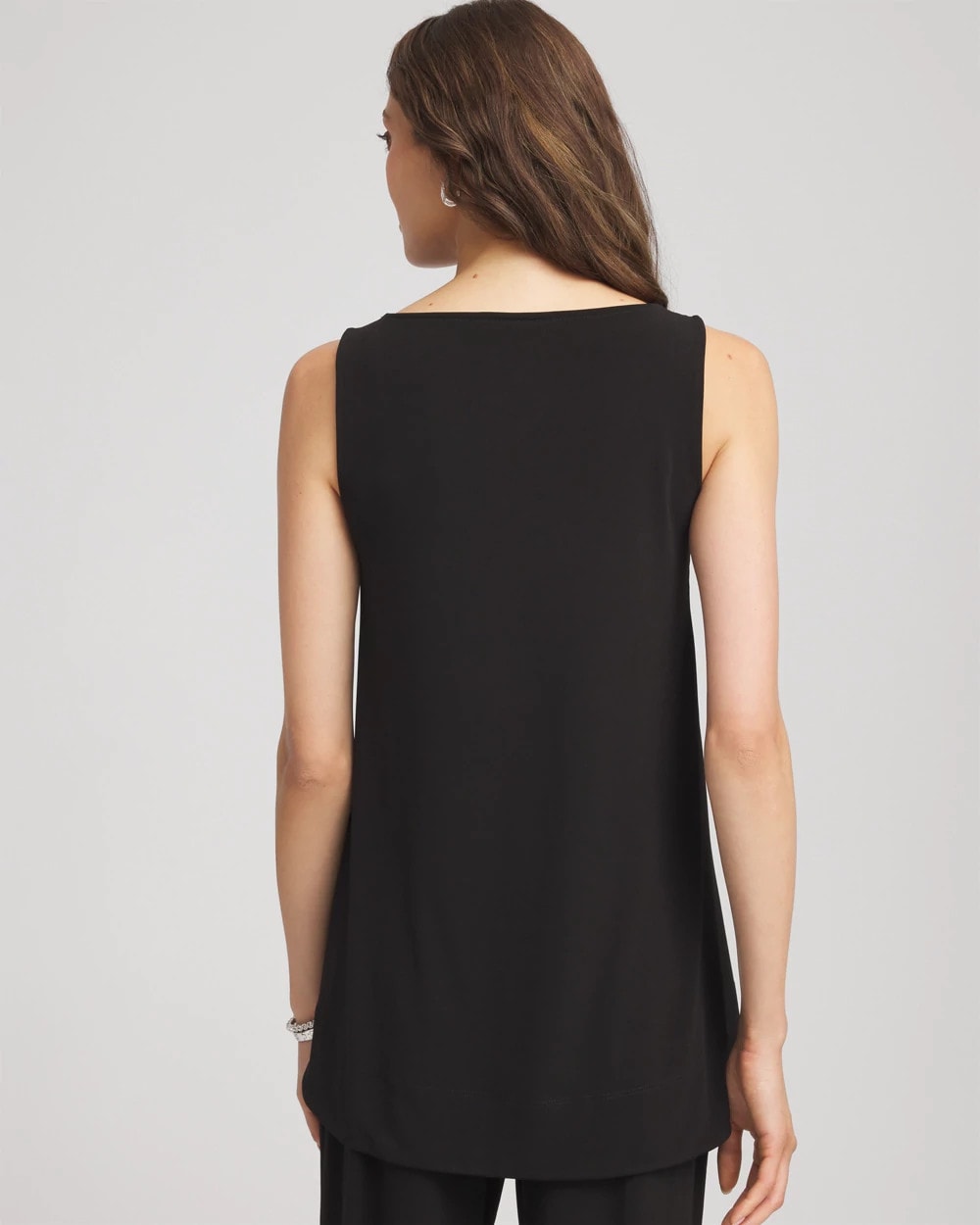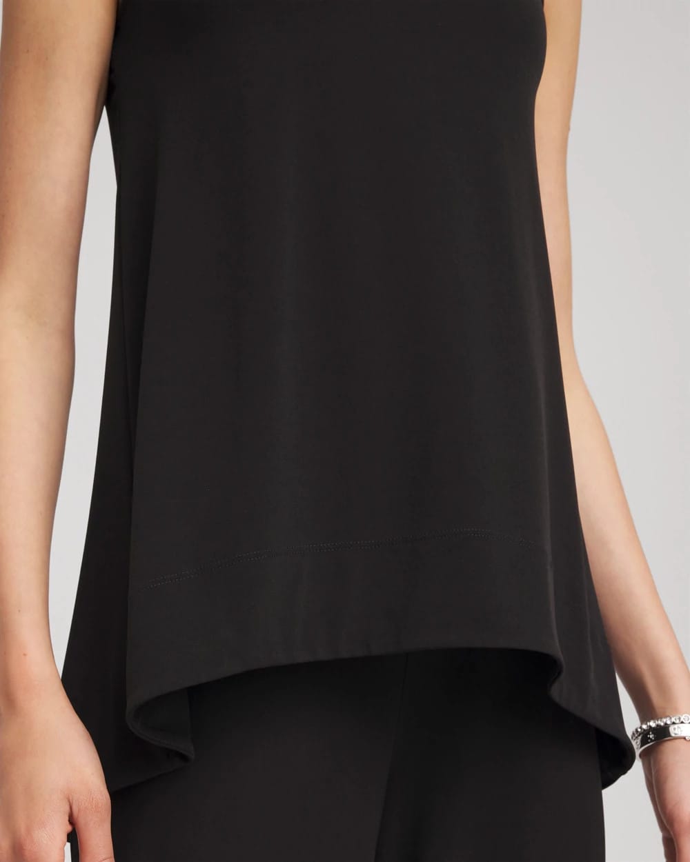 Travelers™ new knit pullover top—showcasing a high-low hemline, for a unique asymmetrical silhouette that offers more coverage in the back. Sleeveless, with a bateau neckline, and cut fromsoft to the touch, stretch-knit. The ideal travel garment—wrinkle-resistant, perfect for packing, and for long trips (or long days). This brand new style pairs perfectly with our Travelers™ wide-leg pant, featuring a wide elasticized waistband and high-rise pants.