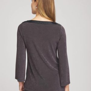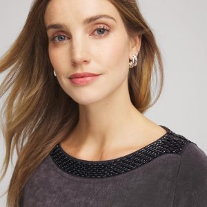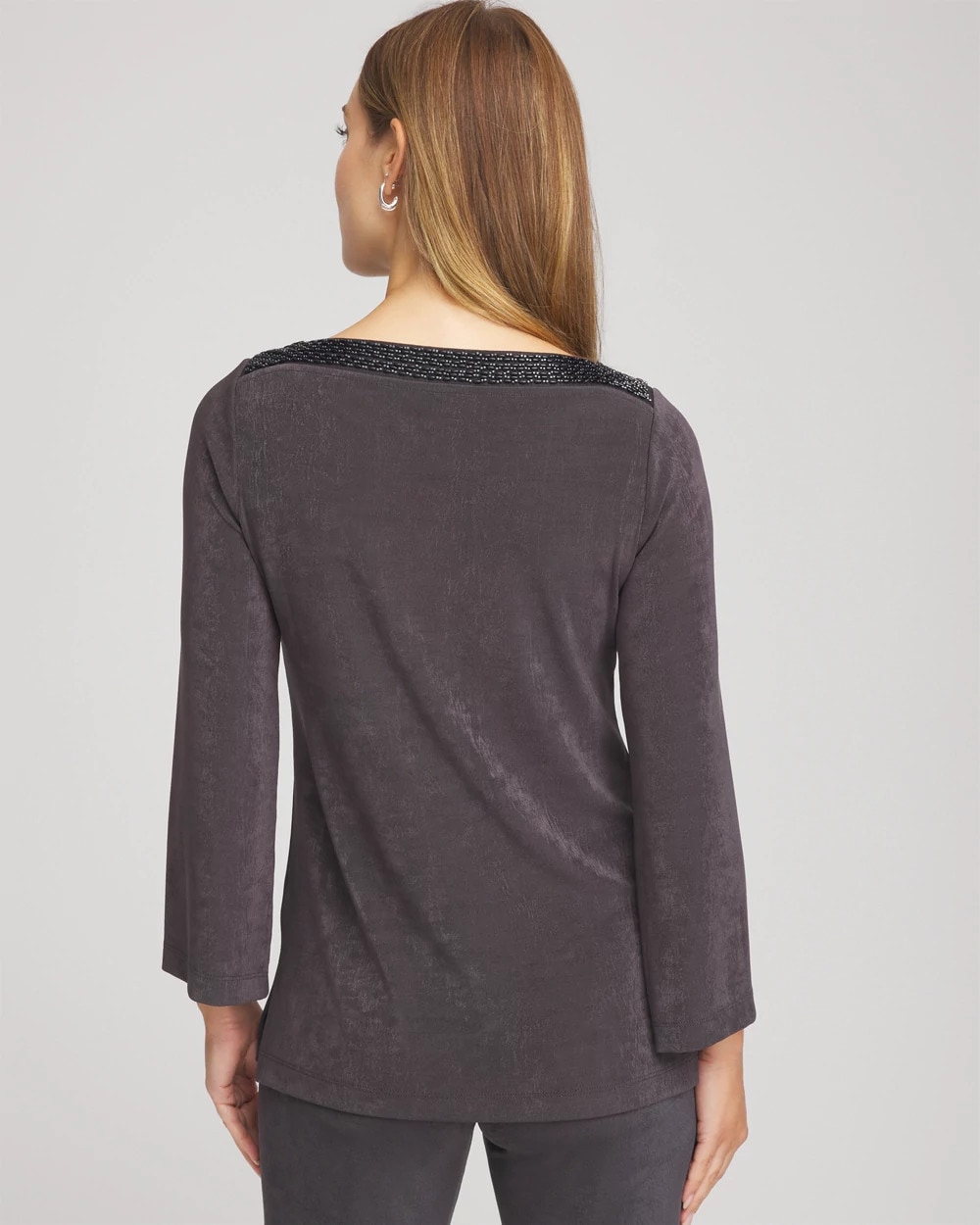 The Travelers™ Koia Pearl Beaded Tunic revamps Chico’s signature Travelers™ tunic silhouette with an array of thoughtful design elements, including a bateau neckline and soothing gray hue. Modeled on classic tunic tops, cut from breathable, travel-friendly, wrinkle-free, and sustainable Naia™ fabric. Wear with custom made to match Travelers™ No Tummy Pants and other outerwear.