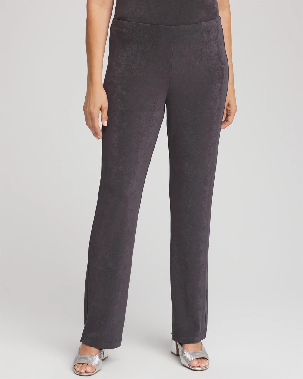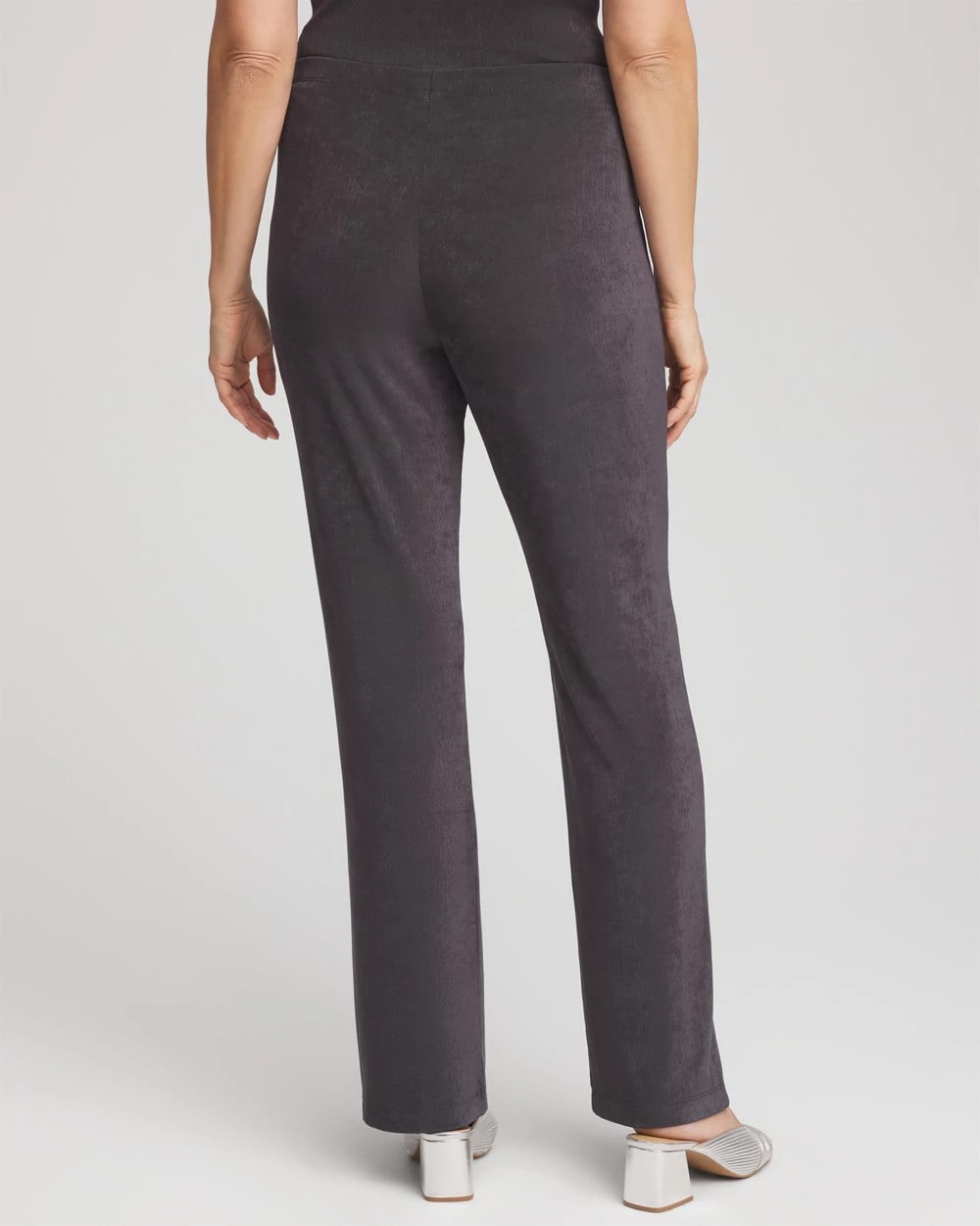 - Straight-leg, clean lined, encased elastic waist with No Tummy design.