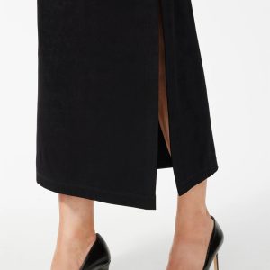 - Classic-fit, pull-on, side-slit maxi skirt.
