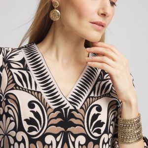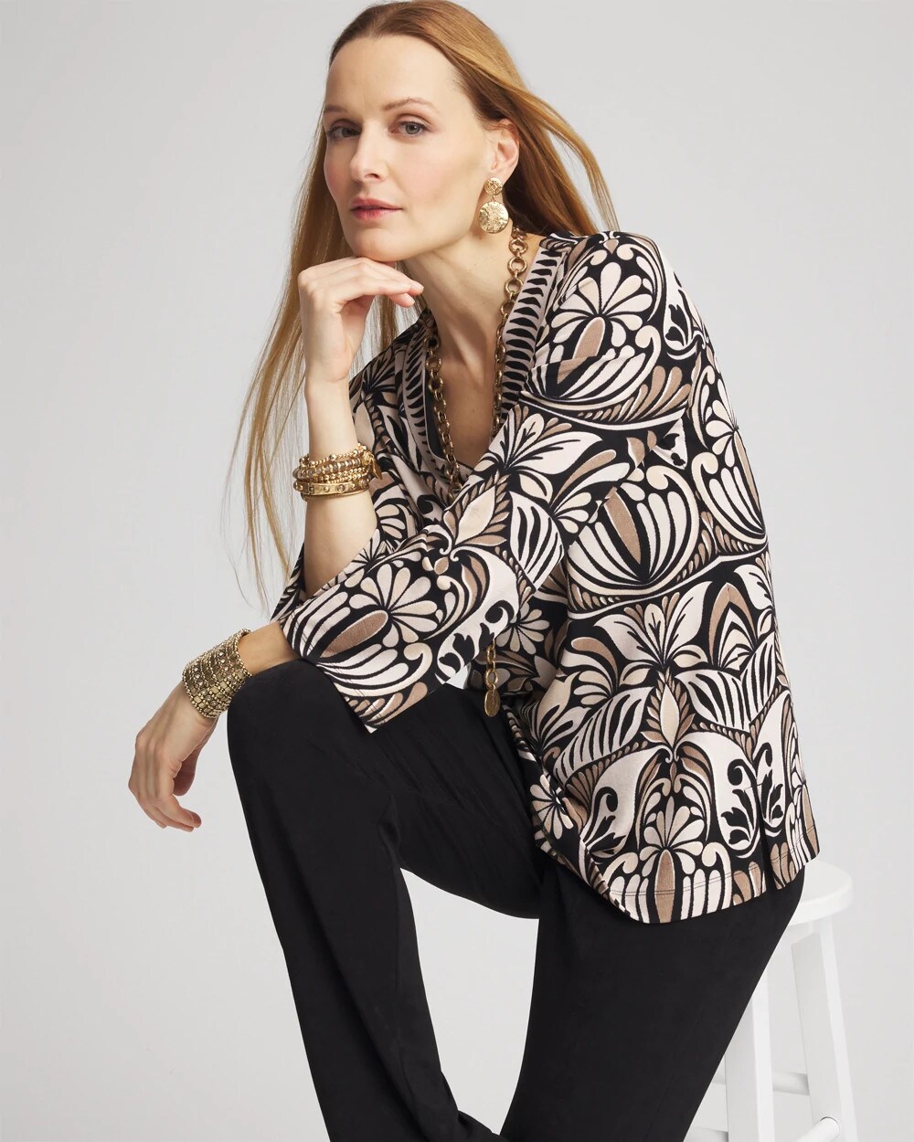 This soft new Travelers™ V-Neck Print Tunic is a perfect way to elongate your look and create a sleeker style. Featuring an ultra-flattering new print.