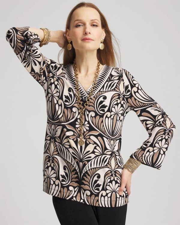 This soft new Travelers™ V-Neck Print Tunic is a perfect way to elongate your look and create a sleeker style. Featuring an ultra-flattering new print.