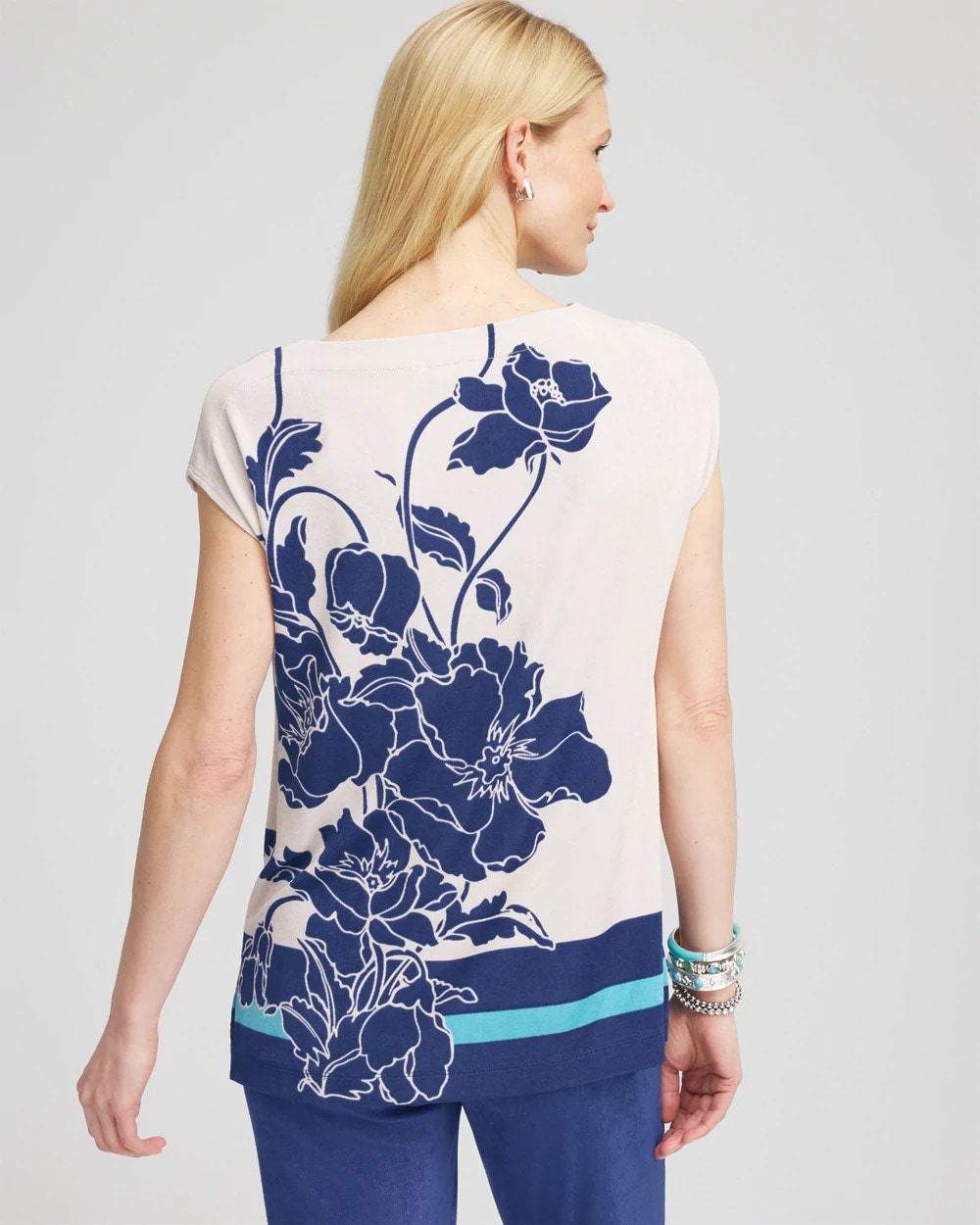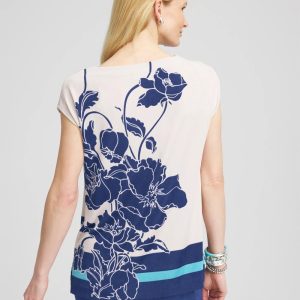The Travelers™ Wildflower Cap-Sleeved Tunic has a classic vacation-ready fit, look, and feel. Made with our travel-friendly, wrinkle-resistant naia fabric, this top features a stunning floral print with colorblock hemline border and side slits. Pairs perfectly with any of our solid Travelers™ pants for a look that stays fresh, no matter how long it stays in your suitcase.