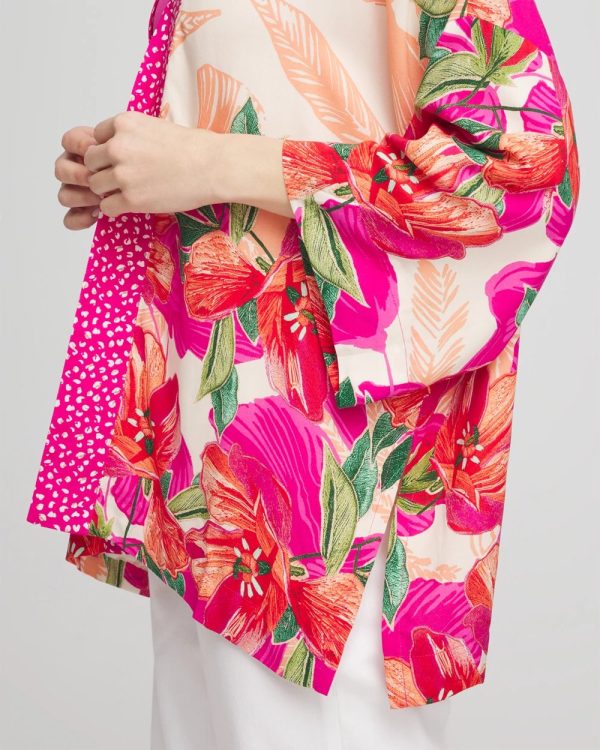 Perfect for topping everything from camisole’s to tees and tanks, this lined kimono adds a delicate, fashionable layer of femininity. Open-front short kimono with 3/4 sleeves, and an animal printed placket.