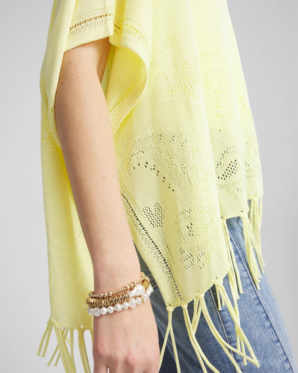 You will love this stylish spring layer, Chico’s new V-Neck Cutwork Placket Poncho. Soft and flattering with a v-neckline and cutwork placket. Don’t leave home without it. Pair with a microfiber tank or other base layer.