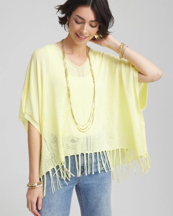 You will love this stylish spring layer, Chico’s new V-Neck Cutwork Placket Poncho. Soft and flattering with a v-neckline and cutwork placket. Don’t leave home without it. Pair with a microfiber tank or other base layer.