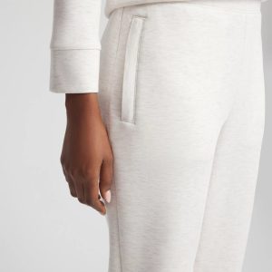 - Relaxed-fit joggers with cuffed ankles and zip pockets.