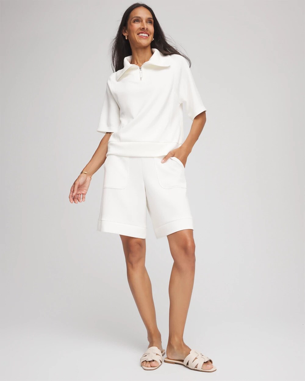 Our bestselling Scuba Shorts designed with top applied pockets. You have to feel our Zenergy® buttery soft Scuba Shorts to believe how soft they are — double-knit lavish fabrication. Above the knee, 7″ length. Not too short. Not too long. Crafted with a smooth, clean-finish waistband for an ultra-flattering fit. Perfect match for our Zenergy® Scuba Tops.