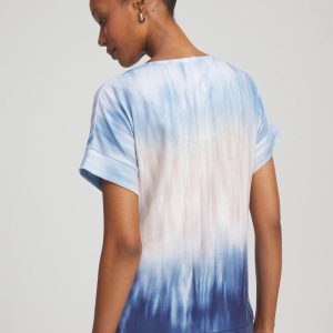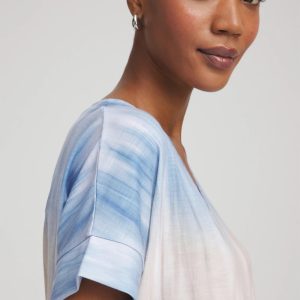 Lightweight soft-stretch slub delivers the perfect drape, helping to define this short-sleeved v-neck tee. Showcasing a soothing medley of neutral and blue ombré hues.