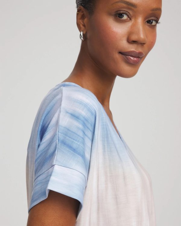 Lightweight soft-stretch slub delivers the perfect drape, helping to define this short-sleeved v-neck tee. Showcasing a soothing medley of neutral and blue ombré hues.